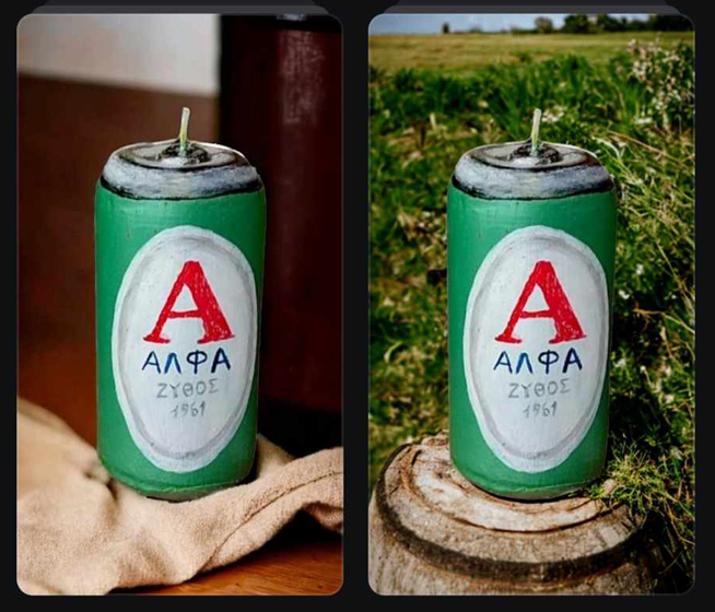 ΚΕΡΙΝΟ ΚΥΛΙΝΔΡΙΚΟ Ø60×110 ΜΠΥΡΑ ΑΛΦΑ ΣΕ ΠΡΑΣΙΝΟ ΚΟΥΤΙ
